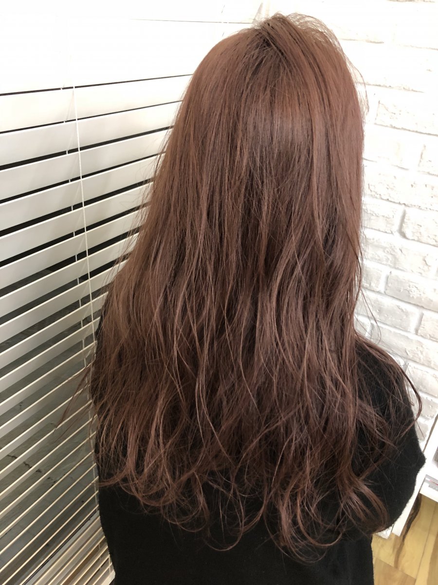 ブラウンで全体を安定させ、そこにほんのりピンクを加えて ピンクブラウン にお染めしました。